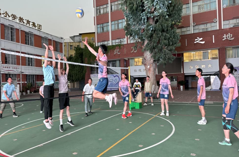 为增强团队凝聚力与向心力,2026年4月16日、17日下午在附小篮球场,教育集团工会举行第六届“开拓杯”教职工气排球比赛。集团办公室、附属高中、附属中学、附属小学、附属幼儿园、附属呈贡附小、附属呈贡雨花7支队伍组队参赛。