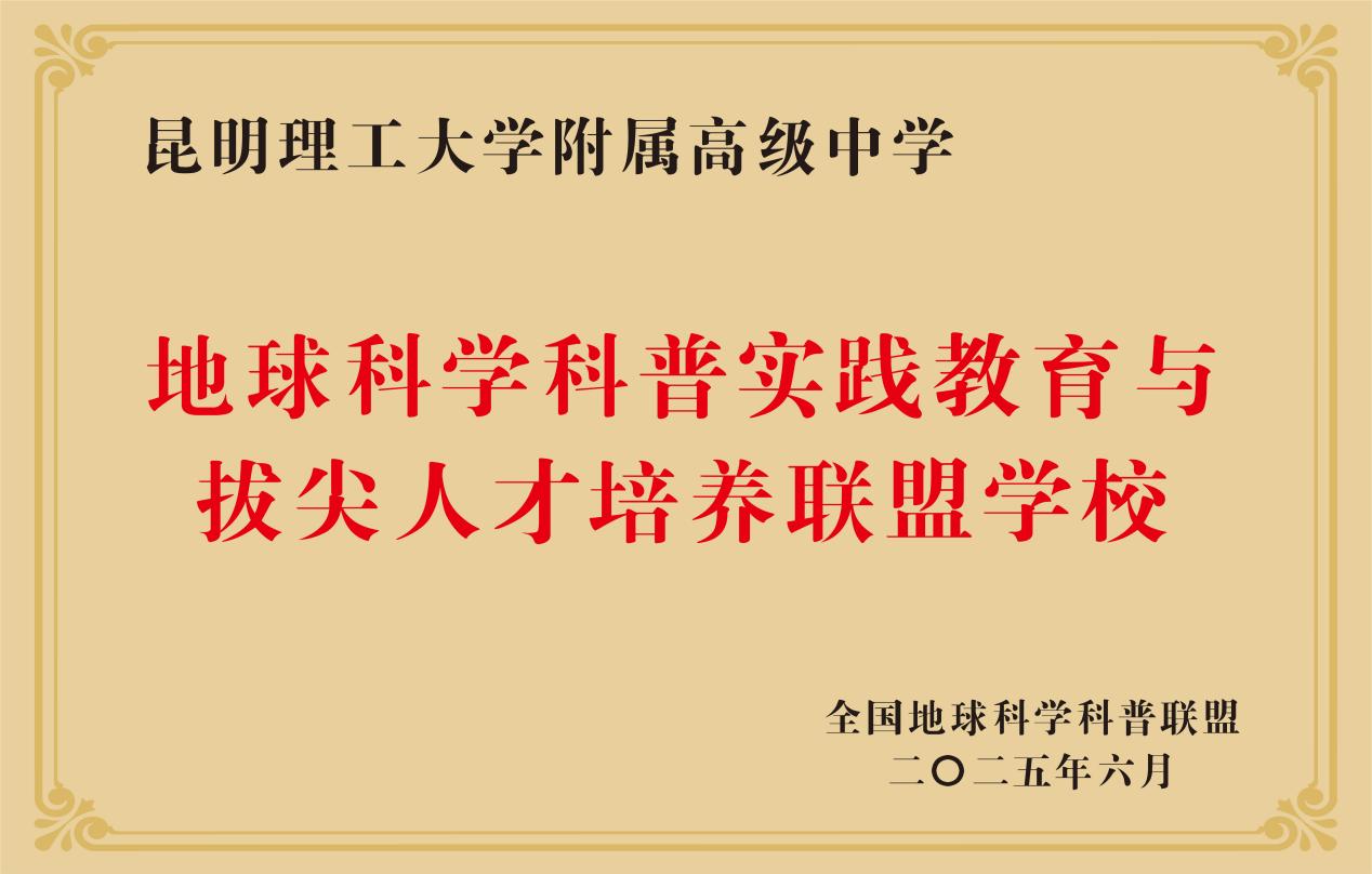 学校秉承昆理工办学精神,以“仰望星空,脚踏实地”为精神内核,秉持“师生幸福成长”办学理念,以“至诚、弘毅、忠肃、笃学”为校训,涵养“正德、明理、尚美、求真”校风,构建起教风严谨、学风醇厚的育人生态,深耕“红土教育”品牌,荣获云南省教育工作先进集体、云南省平安校园、绿美校园、航空特色学校、全国科普实践联盟校等多项殊荣,是多所重点高校优质生源基地与实习基地,办学实力广受认可。
